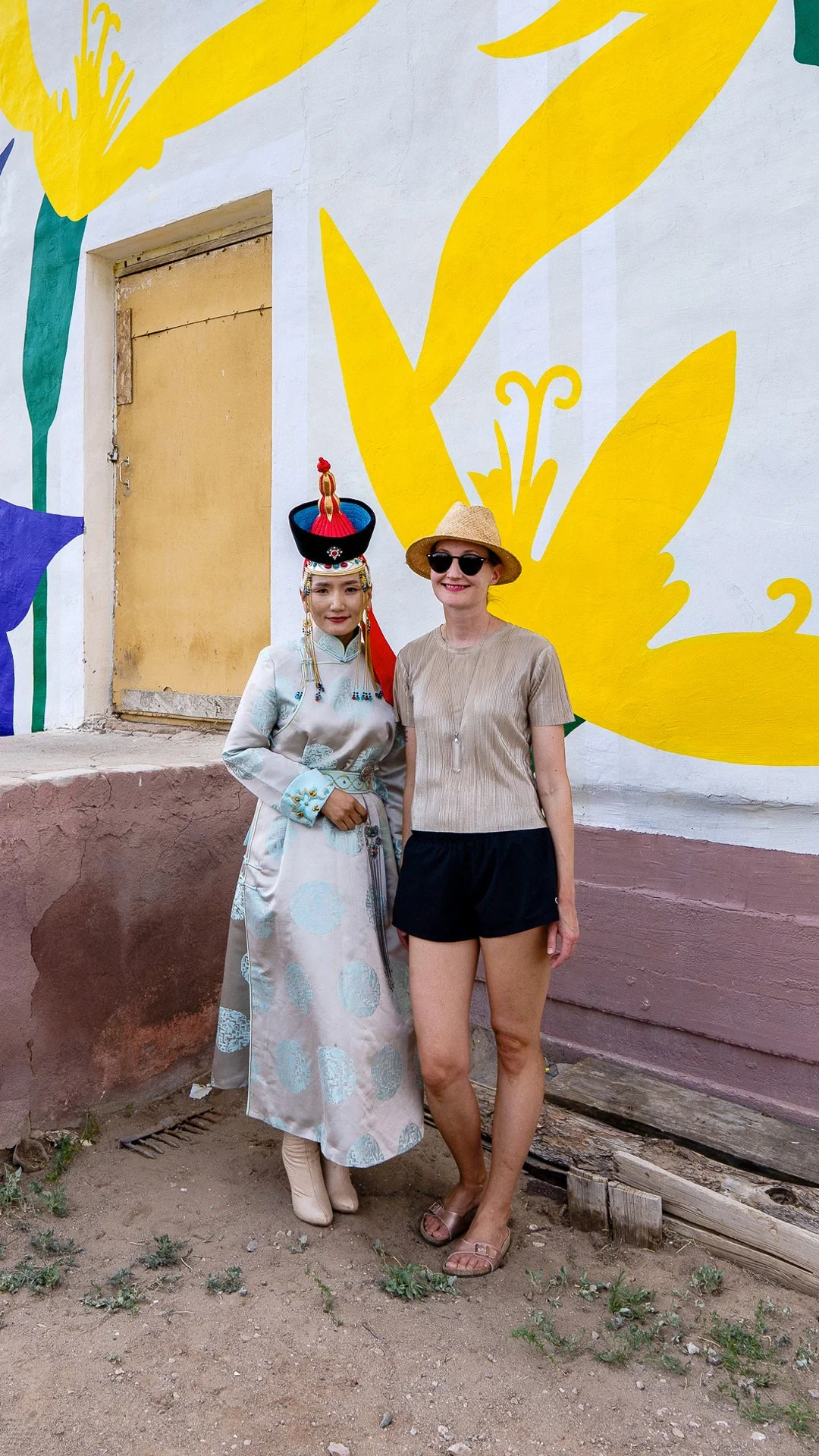 Painting in the middle of a desert was a dream come true, although I wish the need for this initiative was different. Gobi Desert weather extremes vary from summer temperatures that can frequently soar above 40°C to winter lows around -40°C. Severe droughts have contributed to increased desertification. Thus, climate change has driven 35% of the population of Tsagaandelger Soum away.